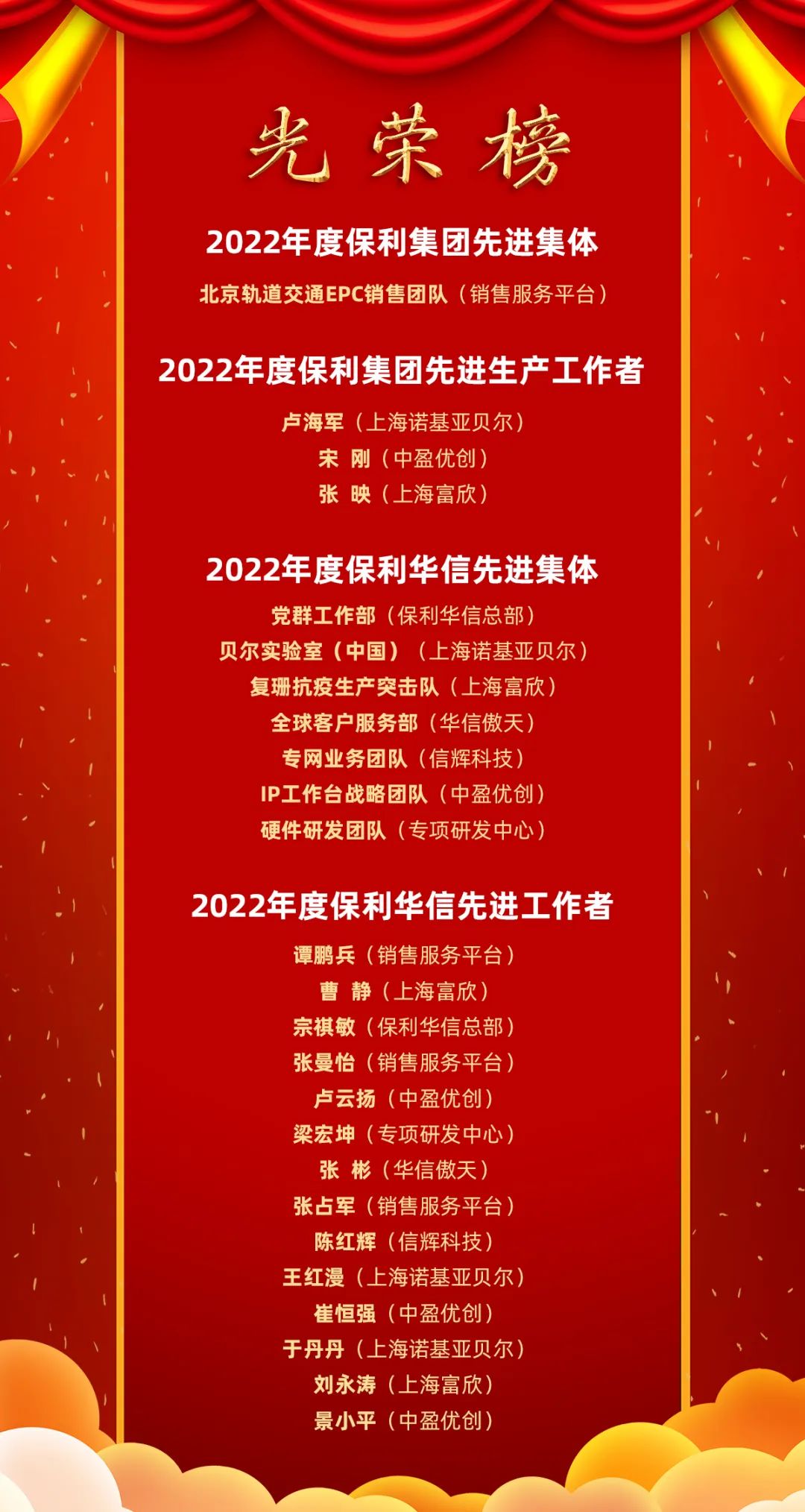 會(huì)上,還對(duì)獲得集團(tuán)公司表彰的先進(jìn)集體和先進(jìn)生產(chǎn)工作者、保利華信2022年度先進(jìn)集體和先進(jìn)工作者進(jìn)行了表彰。公司黨委委員、副總經(jīng)理李少彤同志代表公司黨委宣讀了表彰決定。