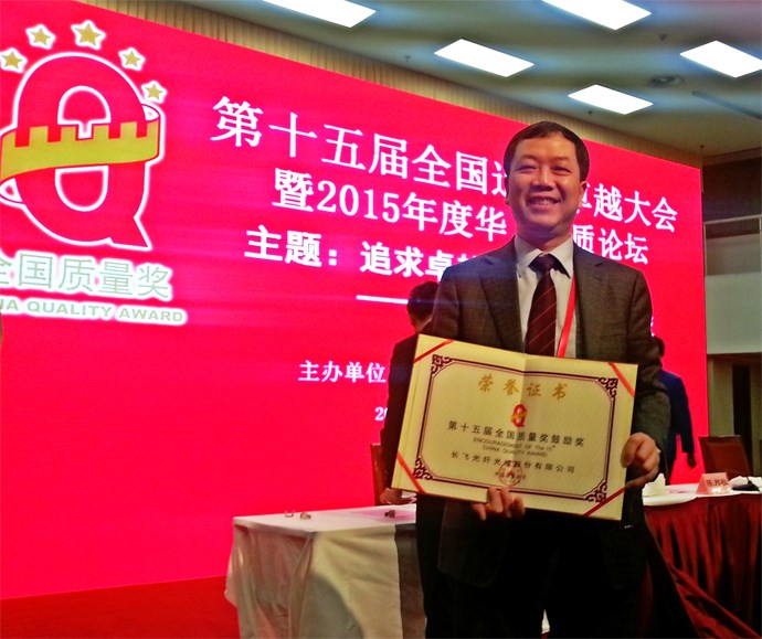 2015年11月4日,長(zhǎng)飛光纖光纜股份有限公司獲得由中國(guó)質(zhì)量協(xié)會(huì)頒發(fā)的2015年“第十五屆全國(guó)質(zhì)量獎(jiǎng)鼓勵(lì)獎(jiǎng)”。這是繼長(zhǎng)飛公司獲得2014年“第十四屆全國(guó)質(zhì)量獎(jiǎng)鼓勵(lì)獎(jiǎng)”后再次獲得這一殊榮。